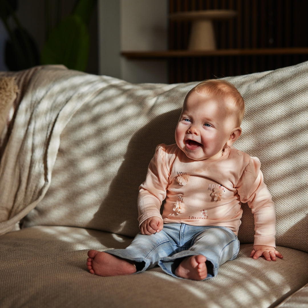 Morbida t-shirt a manica lunga per neonata firmata Dirkje, realizzata con tessuti delicati e confortevoli. Caratterizzata da eleganti applicazioni che aggiungono un tocco di personalità al capo. Perfetta per le stagioni più fredde, garantisce libertà di movimento e praticità nei cambi frequenti. Disponibile in variante unica, rappresenta una scelta affidabile per il guardaroba essenziale della piccola.