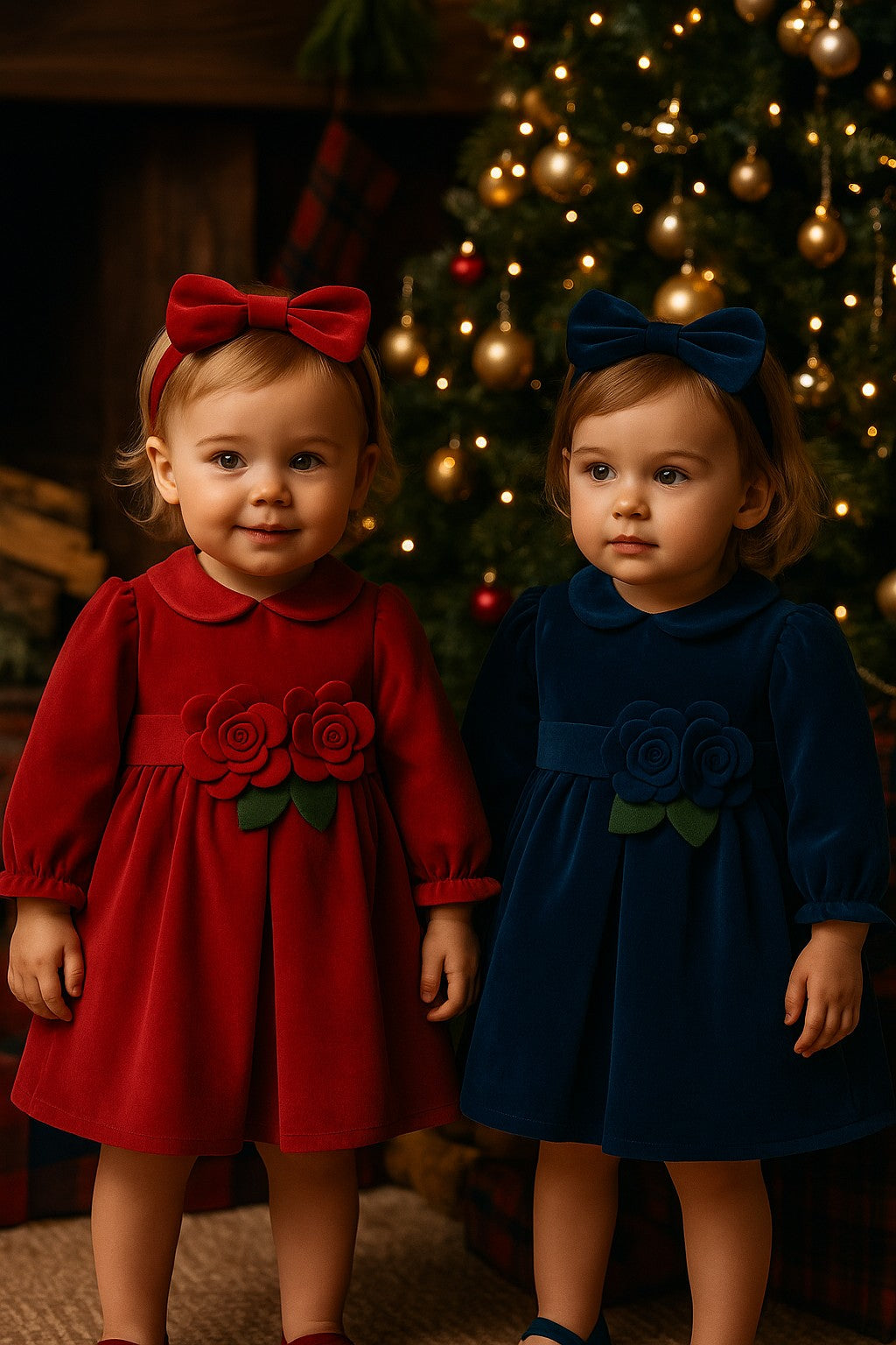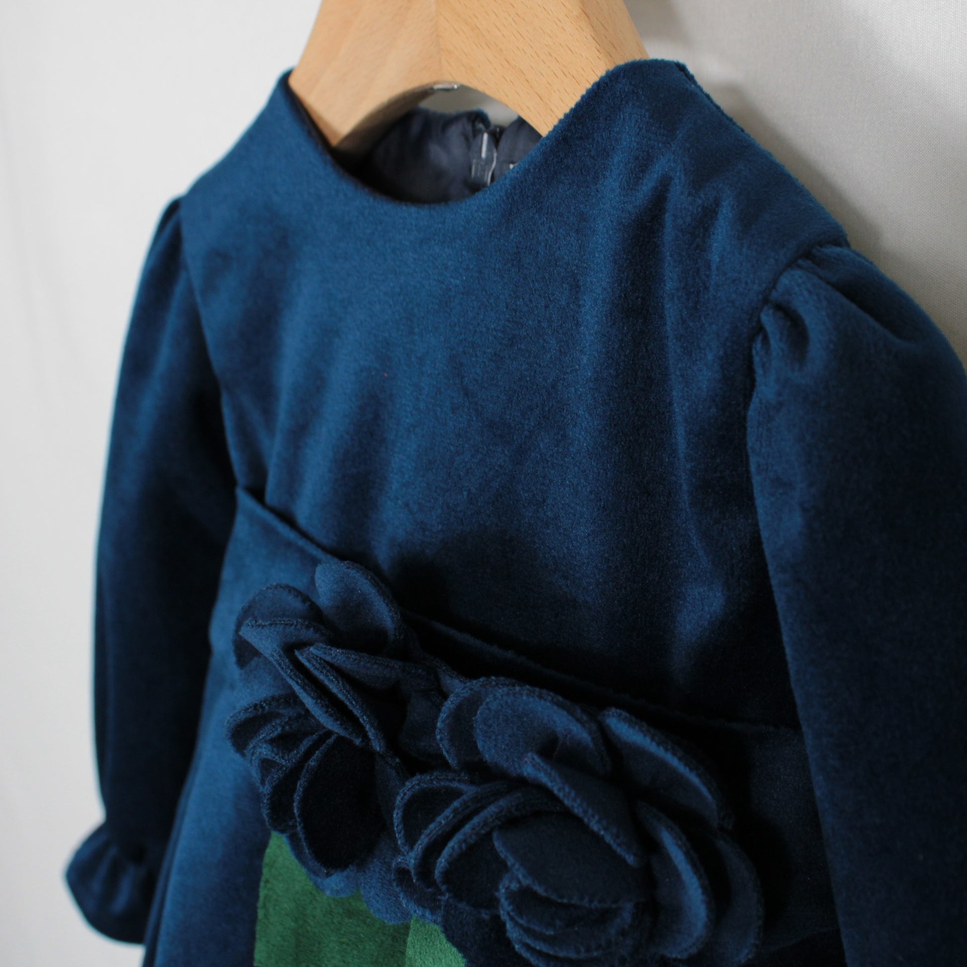 Questo abito natalizio per neonata, realizzato in morbido tessuto effetto vellutino, unisce eleganza e comfort. Decorato con delicati fiori e un fiocco sul retro, è completato da un sottogonna in tulle e una federa in cotone per garantire freschezza e morbidezza sulla pelle. Disponibile nei classici colori rosso e blu, è ideale per festeggiare con stile i primi mesi di vita. Made in Italy, è prodotto al 100% in poliestere e disponibile nelle taglie da 12 a 30 mesi.
