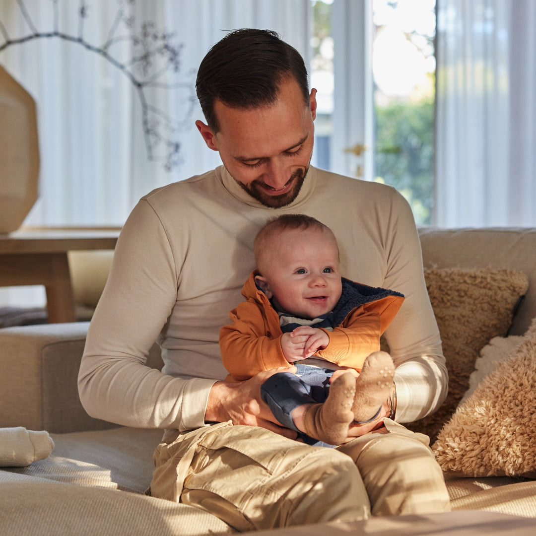 Completo neonato tre pezzi Dirkje perfetto per le prime stagioni di vita. La tuta è composta da una felpa con zip integrale e cappuccio, ideale per facilitare il cambio e mantenere il piccolo al caldo. La t-shirt a righe in girocollo aggiunge un tocco di stile classico, mentre i pantaloni jogger garantiscono comfort e libertà di movimento. Materiali morbidi e delicati sulla pelle sensibile del neonato. Pratico e versatile per l'uso quotidiano.