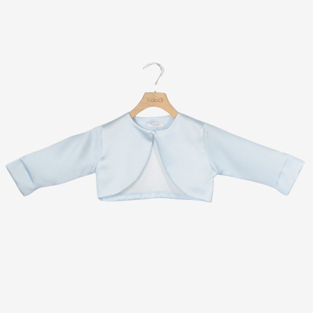Questo coprispalle in mikado è perfetto per le cerimonie delle bambine. Con un elegante bottone alla gola, disponibile nei colori verde salvia, rosa corallo, bianco e azzurro polvere. Taglie disponibili da 3 anni a 13/14 anni, realizzato al 100% in Italia. Grazie al suo materiale in poliestere, garantisce comfort e qualità.