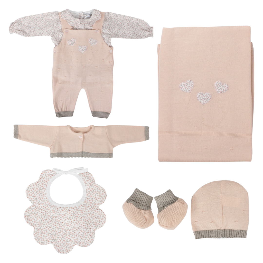 Scopri il bundle Klaiadì in lana Made in Italy: un set completo e raffinato per neonata, ideale per corredino e prime occasioni speciali. Il pacchetto comprende copertina per culla coordinata, completo due pezzi con cardigan, bavetta fantasia e coordinato cappello e scarpine, tutti realizzati in morbida lana di alta qualità. Il delicato rosa antico si abbina a romantiche fantasie floreali, per uno stile dolce ed elegante sin dai primi giorni. Perfetto come regalo nascita esclusivo, garantisce comfort, calore e qualità artigianale italiana.