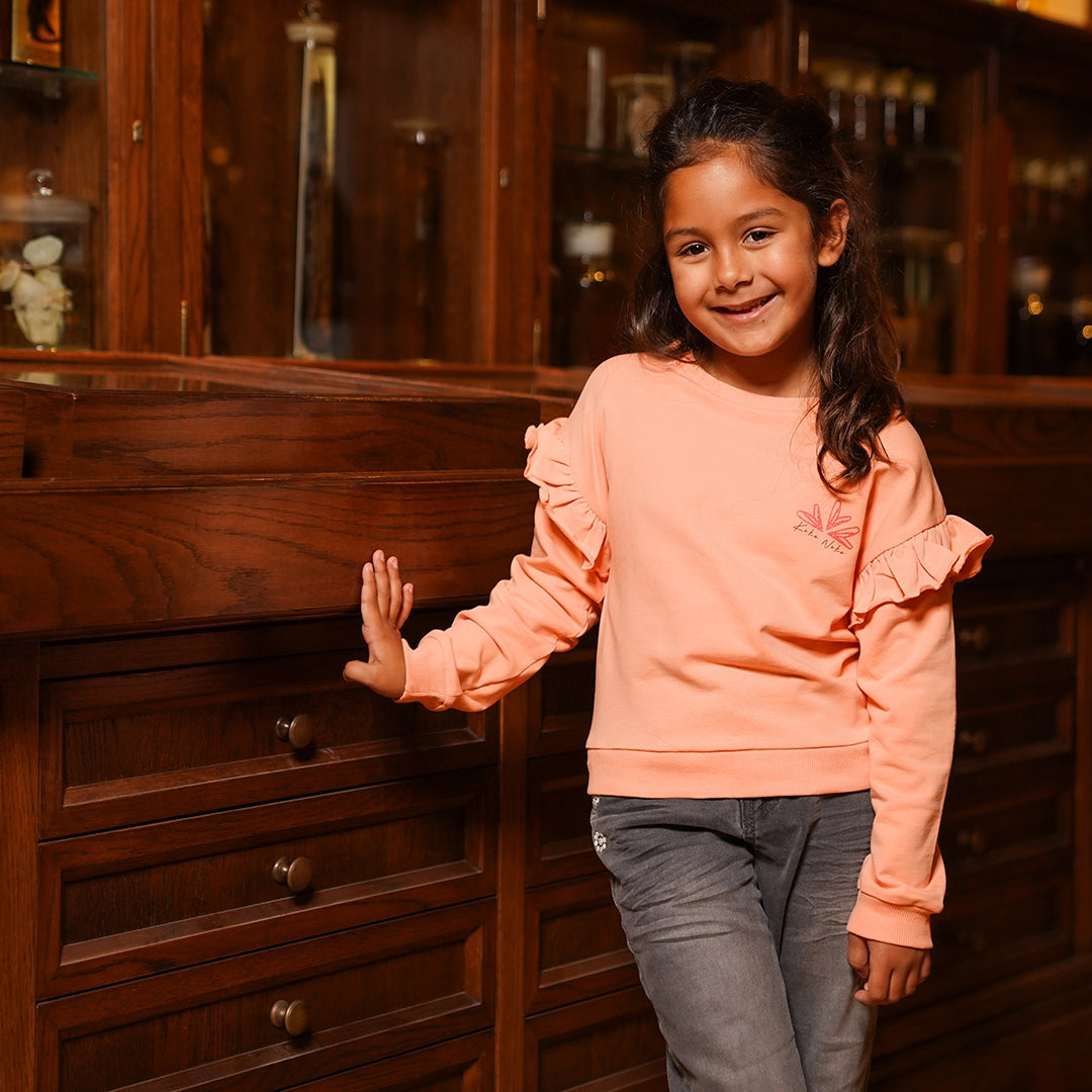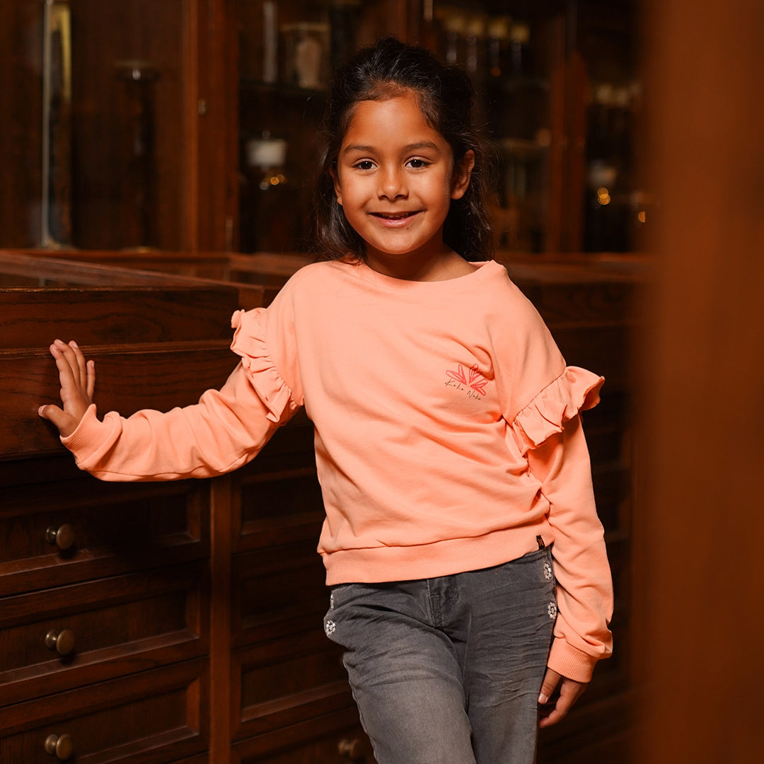 Felpa in cotone di qualità superiore firmata Koko Noko, perfetta per la collezione Autunno/Inverno 2025. Caratterizzata da una stampa originale e dettagli di rouches che aggiungono movimento e femminilità al capo. Ideale per le bambine che amano uno stile ricercato e confortevole. Realizzata con materiali selezionati per garantire morbidezza e durabilità nel tempo. Un pezzo versatile che si abbina facilmente con i capi della collezione O-girls 2, perfetto per creare outfit sofisticati e moderni.